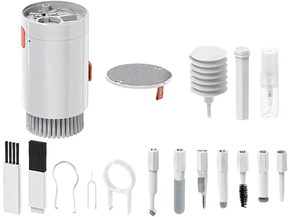 Contém removedor de teclas, borrifador, placa de limpeza, escovas e ferramentas detalhadas para alcançar todos os cantos.