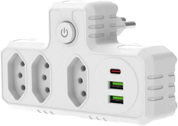 Extensão Tomada possui 3 tomadas de energia, 2 portas USB e 1 porta Type-C