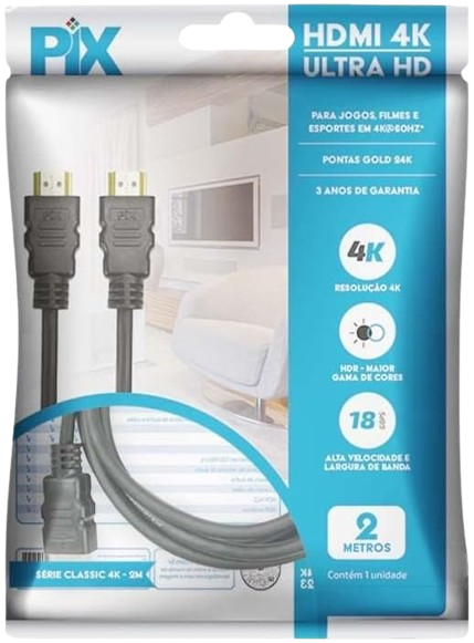 Cabo HDMI de alta performance com extraordinária resolução 8K (7680 x 4320px), sendo compatível com padrões 8K/60Hz, 4K/120Hz e Full HD/144Hz, garantindo imagens ultranítidas e detalhadas